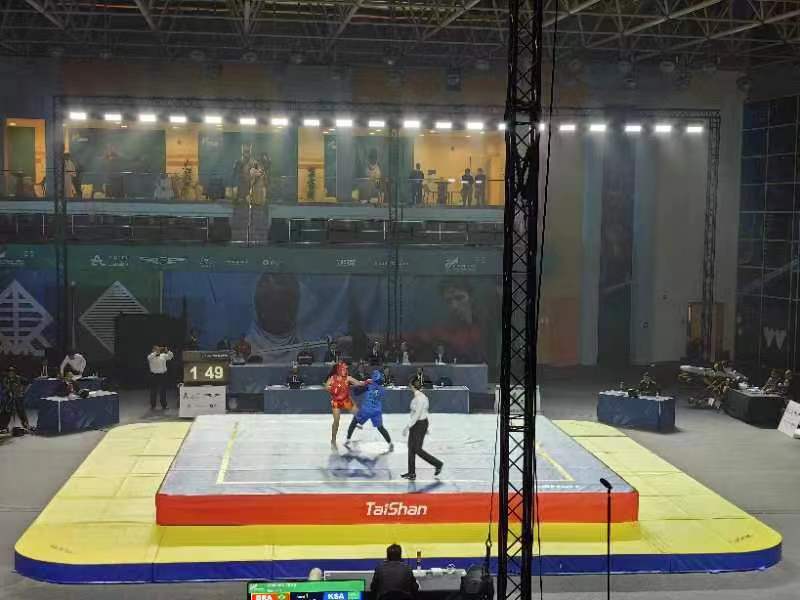 第三届世界武搏运动会武术比赛于10月21日至22日在沙特国王大学体育馆进行,吸引了来自五大洲的31个国家和地区的近80位运动员参赛。武术项目首个比赛日中,共产生男子长拳与女子长拳两枚金牌。其中,尼泊尔、中国各获一金。作为本届世界武搏运动会器材供应商与服务商,凯发体育再一次助力世界武搏运动会的高水平举办。